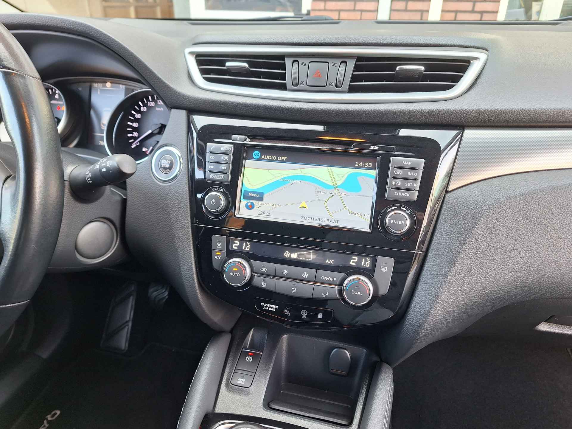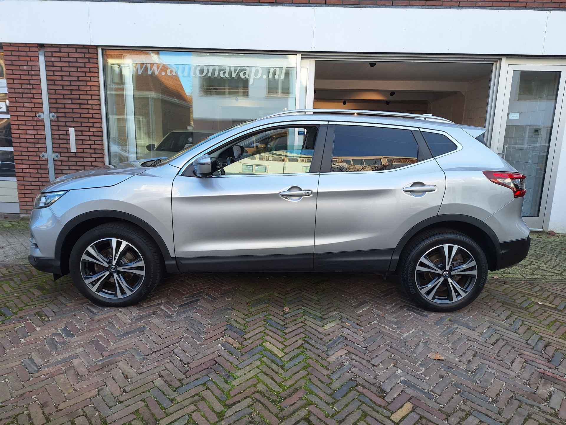 Met een SUV als deze hebt u een praktische en ruime auto, maar tegelijk biedt hij ook comfort en rijplezier. Het is een dealeronderhouden Nissan Qashqai die slechts 70.225 kilometer heeft gelopen, hij is van het bouwjaar 2017. De SUV haalt zijn aandrijving uit een krachtige viercilinder benzinemotor. Door het glazen panoramadak heeft u een weidse zichthoek en geniet u van licht en een gevoel van ruimte. In deze Nissan profiteert u onder andere ook van: 18 inch lichtmetalen velgen, LED-dagrijverlichting, in hoogte verstelbare passagiersstoel, donker getint glas achter, in delen neerklapbare achterbank en verstelbare lendensteunen. Elk van de vier camera's op deze auto draagt bij aan het creëren van een onbelemmerd uitzicht van 360 graden rondom de auto. Een belangrijke veiligheidsvoorziening is de bediening van het audio-installatiesysteem en het navigatiesysteem via knoppen op het stuur. Dab-ontvangst geeft daarbij een kraakheldere ontvangst. In een auto als deze kunt u niet zonder automatische airconditioning, zodat de temperatuur altijd goed is. Geen parkeervak is te klein dankzij de assistentie van de parkeersensoren. De cruise control zorgt voor een mooie, gelijkmatige snelheid die u zelf instelt. Dat is relaxt! Met keyless entry, automatisch dimmende binnenspiegel en lederen stuur is deze auto helemaal compleet. In de Nissan Qashqai heeft uw veiligheid en die van uw omgeving prioriteit. Onderweg fungeert de verkeersbord-detectie als het ware als uw bijrijder en attendeert u op de verkeersborden langs de weg. Voorzien van het Lane-keeping systeem. Ofwel: blijf automatisch in je baan. De auto is ook uitgerust met hill hold functie, autonoom remsysteem en bandenspanningcontrolesysteem. Ziet u een auto die u aanspreekt? Neem gerust contact op, ik maak graag een afspraak met u. Afleverkosten €549,-, incl. nieuwe APK, afleverbeurt en 3 maanden garantie. Financiering & lease mogelijk. Proefrit alleen op telefonische afspraak. Meer info: www.autonavap.nl Openingstijden: Ma: 13:00–17:00 | Di–Vr: 10:00–17:00 | Za: 10:00–15:00